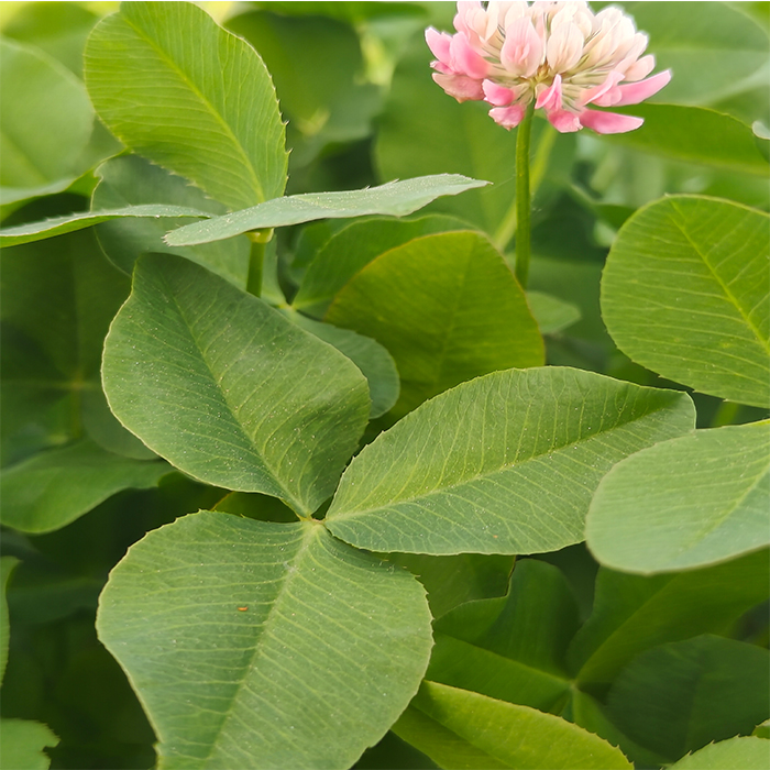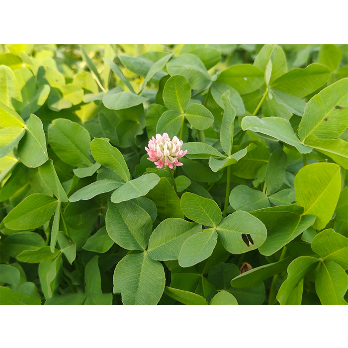 雜三葉,又名瑞典三葉草、雜車軸草,是豆科三葉草屬單獨(dú)的物種,屬多年生草本,形態(tài)介于白三葉和紅三葉之間。直根系,主根穿透力強(qiáng),側(cè)根發(fā)達(dá),并且耐寒力強(qiáng)。莖光滑,細(xì)軟、中空、半直立,長30-70cm。分枝橫向生長,分枝力強(qiáng),一般10-20條,多者30條,即使在花期腋芽也不斷分枝。葉冠豐滿,葉豐富;三出掌狀復(fù)葉,小葉卵形或倒卵形;整個生長季持續(xù)開花,總狀花序,花朵為粉紅色或白色,花冠約1cm,種子小,顏色為黃綠混色,千粒重0.7-0.8g。