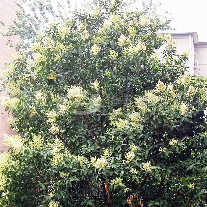 女貞,木犀科女貞屬,原產于中國,廣泛分布于長江流域及以南地區(qū),華北、西北地區(qū)也有栽培,能耐-10℃左右低溫。高可達25m;樹皮灰褐色?;ㄆ跒?-7月,果期為7月至翌年5月。果腎形或近腎形,成熟時呈紅黑色。