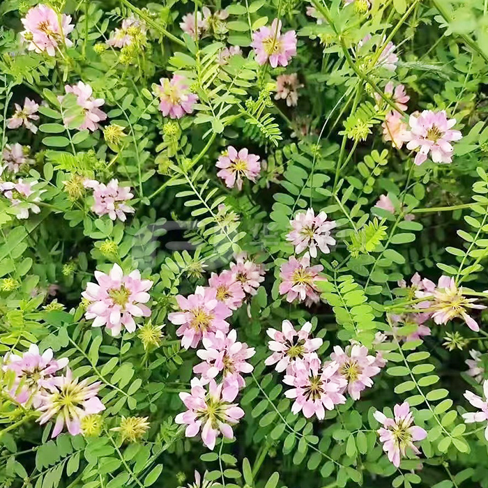 小冠花屬于多年生草本植物,豆科小冠花屬。根系粗壯發(fā)達(dá),密生根瘤,其根上的不定芽再生能力強(qiáng),能使根系向水平方向蔓延。莖中空,有棱,質(zhì)地柔軟匍匐向上伸,*長(zhǎng)可達(dá)180cm,分枝能力強(qiáng);節(jié)上葉芽易萌發(fā)形成很多側(cè)枝。奇數(shù)羽狀復(fù)葉,互生。喜溫暖濕潤(rùn)氣候,但因其根蘗芽潛伏于地表下20cm左右處,故抗寒越冬能力較強(qiáng)。