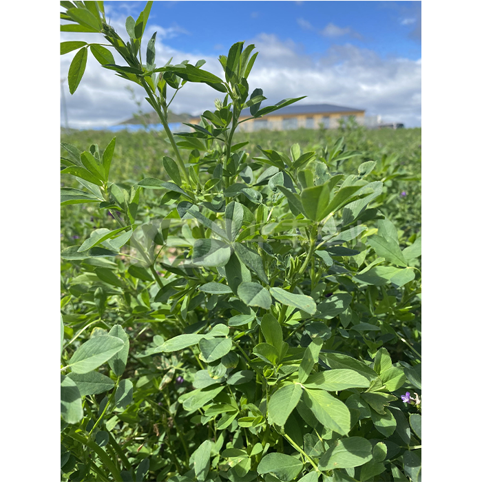 品種特性:秋眠級5級、耐旱性強、耐寒性強、生長速度快、綜合抗病性強、高抗各種苜蓿病蟲害;植株持久性強,利用年限長,大葉3-5片,多葉率高,牧草產(chǎn)量高、營養(yǎng)豐富、蛋白含量高、品質(zhì)好;耐頻繁刈割,生長速度快。適口性好、消化率高,各類家畜喜食。