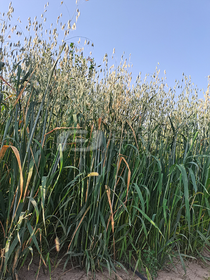 加拿大引進的晚熟型專用飼用燕麥品種。全生育期110-120天,種子凈度≥98.0%,芽率≥90%,水分≤10.0%。須根發(fā)達,植株分蘗能力強,莖稈直立,莖粗0.36-0.6cm,株高120-150cm左右。葉量豐富,葉長25-40cm,葉寬1.6-2.8cm。莖葉柔嫩多汁,含糖量高,適口性非常好。干草中粗蛋白含量高,消化率高,營養(yǎng)價值豐富,草味甘甜。在良好的田間管理條件下,水澆地干草產(chǎn)量可達900kg/畝,旱地產(chǎn)量600kg/畝。在我國一年可種植兩季燕麥的地區(qū),全年的干草產(chǎn)量可達1200kg/畝。