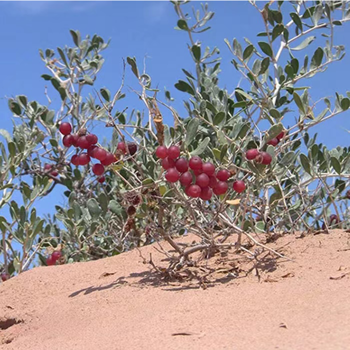 白刺為旱生型陽(yáng)性植物,適應(yīng)性極強(qiáng),極耐旱、耐鹽堿、抗寒、抗風(fēng)、耐高溫、耐瘠薄。枝條平鋪地面,積沙成丘,為優(yōu)良固沙植物。