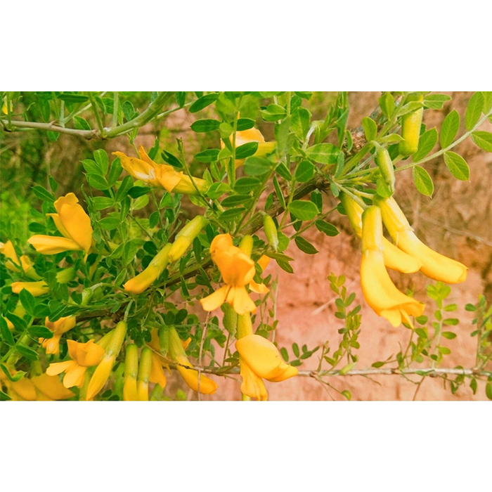 檸條(Caragana korshinskii Kom),矮小灌木,株高30-100cm。多分枝,樹皮灰黃色,幼枝被絲質柔毛。長枝上的托葉宿存硬化成針刺,長4-7mm;偶數(shù)羽狀復葉;葉軸長2.5-5cm,密被白色短柔毛;小葉3-8對,小葉片橢圓形或倒卵狀橢圓形,長3-8mm,寬2-7mm,先端圓或尖,具刺尖,基部楔形,兩面密被白色短柔毛?;▎紊?;花梗長15-25mm,密被絹狀柔毛,常在中部以上具關節(jié);萼筒管狀鐘形,長約1cm,寬5-7mm,密被短柔毛,萼齒寬三角形,長約2mm;花冠蝶形,黃色,長2-2.5cm,寬約1.5cm,先端尖,基部具短爪,旗瓣寬卵形,長約2.5cm,翼瓣長橢圓形,長3.3-3.5cm,爪長為瓣片的1/2,耳短,長約2mm,龍骨瓣橢圓形,長2-3.3cm,爪稍短于瓣片,耳極短,圓形;雄蕊10,二體;子房無毛或下部疏被短絨毛。莢果扁,披針形或長圓狀披針形,長3-4cm,寬4-6mm,花柱宿存,暗褐色或黑褐色,無毛,厚革質。種子紅色?;ㄆ?月,果期6月。