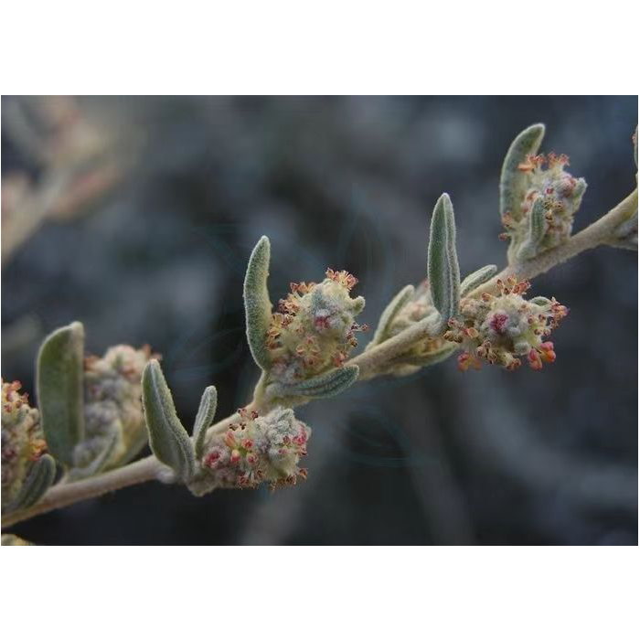 駝絨藜(Krascheninnikovia ceratoides (L.) Gueldenst.)是莧科駝絨藜屬多年生植物。株高可達(dá)1m,分枝斜展或平展,多集中于下部。葉條狀披針形,長(zhǎng)1-5cm。雄花序較短,長(zhǎng) 4cm,緊密;雌花管橢圓形,長(zhǎng)3-4mm。果直立,橢圓形,被毛,花果期 6-9 月。