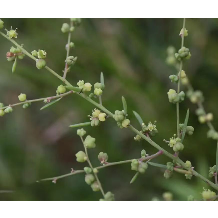 堿蓬(Suaeda glauca (Bge.)Bge)是莧科、堿蓬屬一年生草本植物,高可達(dá)1m。莖直立,上部多分枝,分枝細(xì)長。葉絲狀條形,半圓柱狀,稍向上彎曲?;▋尚约嬗写菩?,單生或2-5朵團(tuán)集,大多著生于葉的近基部處。胞果包在花被內(nèi),果皮膜質(zhì)。種子橫生或斜生?;ü?-9月。