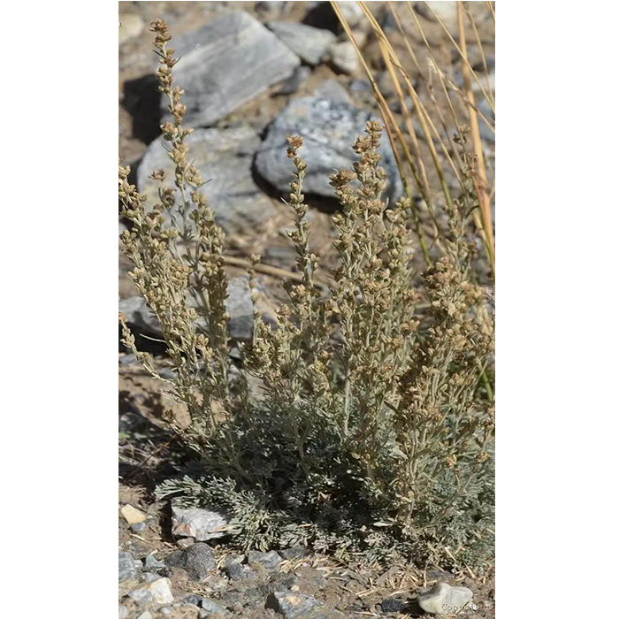 絹蒿(Seriphidium kaschgaricum (Krasch.) Poljakov)菊科絹蒿屬亞灌木狀草本。莖多數,高達35厘米,基部分枝;莖、枝初密被灰白色蛛絲狀疏柔毛;葉兩面初被灰白色蛛絲狀疏柔毛;莖下部、中部葉及營養(yǎng)枝葉長橢圓形或長卵形,長1.5-2cm,一至二回羽狀全裂,每側裂片2-3,不裂或分裂,具2-3小裂片,小裂片窄披針形或窄線狀披針形,長3-5mm,葉柄長0.5-0.8cm;中部葉基部有小型、羽狀分裂假托葉;上部葉與苞片葉不裂,窄線形,基部有假托葉;頭狀花序長卵圓形或長倒卵圓形,徑2-3mm,在分枝排成穗狀或總狀穗狀花序,在蓮組成開展、寬卵形圓錐花序;總苞片初被灰白色蛛絲狀柔毛;兩性花4-6,花冠檐部紅色;瘦果卵圓形或倒卵圓形;花果期8-10月。